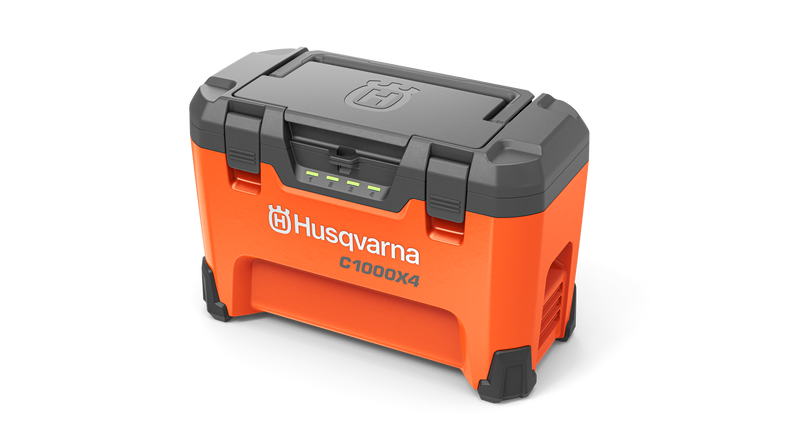 Husqvarna 1000X4 multiladdare för laddning var du vill – i verkstaden, på arbetsplatsen, i din bil eller släp. C1000X4 möjliggör samtidig högeffektsladdning av upp till fyra Husqvarna BLi-X 36V-batterier i en enhet, och tack vare smart lastbalansering kommer alla batterier att laddas snabbt och effektivt. Uppfyller IPX4-klassificeringen för vattentäthet för användning i alla väderförhållanden. Laddare, transportlåda och förvaring – multiladdaren erbjuder en allt-i-ett-lösning för tidsbesparande hantering av batterier. Batterier ingår ej.